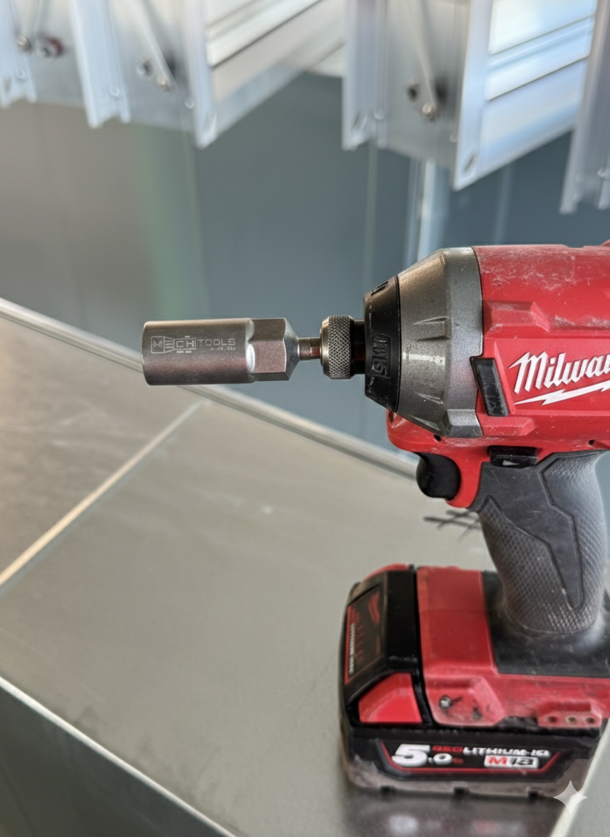 The Mech Tools 16mm Nut Setter is built to make tightening 16mm nuts faster, cleaner and easier on site — especially when you’re hanging duct, tightening duct, brackets, supports or working overhead.